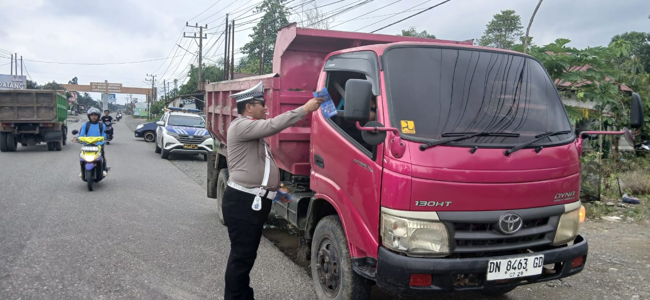 Dalam kegiatan tersebut, petugas menyampaikan himbauan secara langsung kepada para pengemudi kendaraan angkutan barang agar tidak membawa muatan melebihi kapasitas yang ditentukan. Brosur yang dibagikan berisi informasi mengenai risiko kecelakaan akibat muatan berlebih, dampak terhadap kerusakan jalan, serta pentingnya menaati ketentuan keselamatan berlalu lintas.