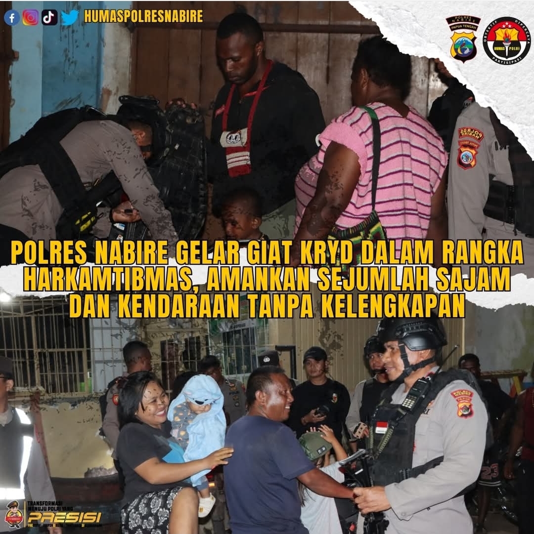 TOBAGOES.COM, Nabire, – Polres Nabire menggelar Kegiatan Rutin yang Ditingkatkan (KRYD) dalam rangka memelihara keamanan dan ketertiban masyarakat (Harkamtibmas) di wilayah hukumnya Polres Nabire, Kamis malam (07/08/2025).